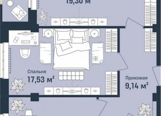 Продается 1-комнатная квартира, 52.9 м2