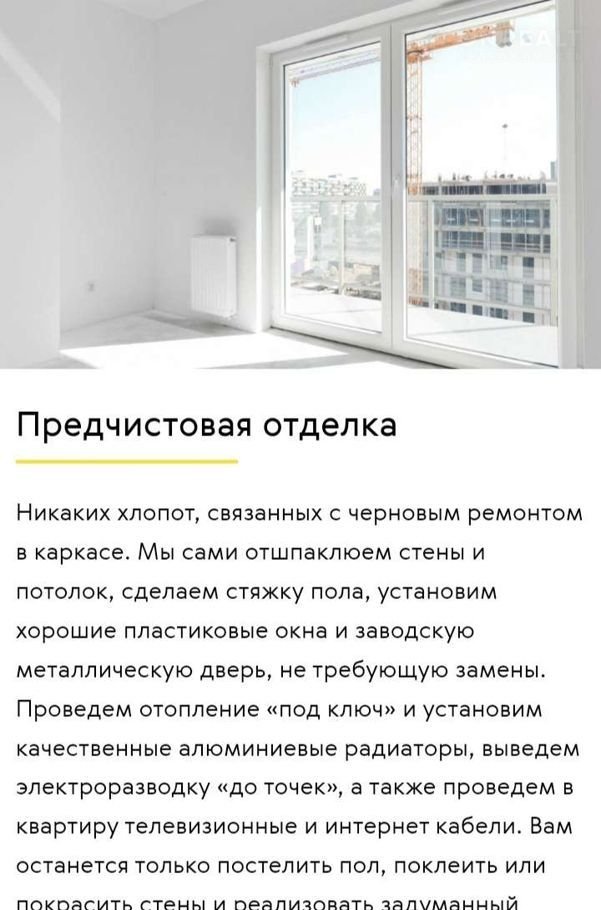 Каркас. Предчистовая отделка квартиры от застройщика.