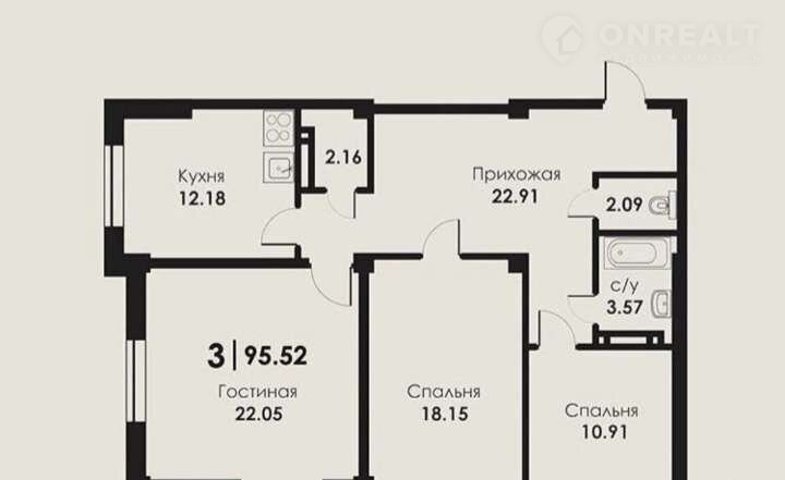 Общая площадь 95.5 м2