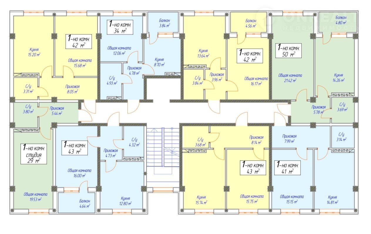 Общая площадь 41 м2