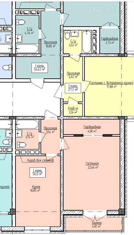 Общая площадь 56 м2