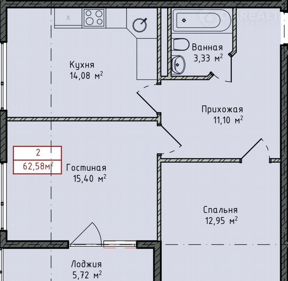 Общая площадь 62.6 м2
