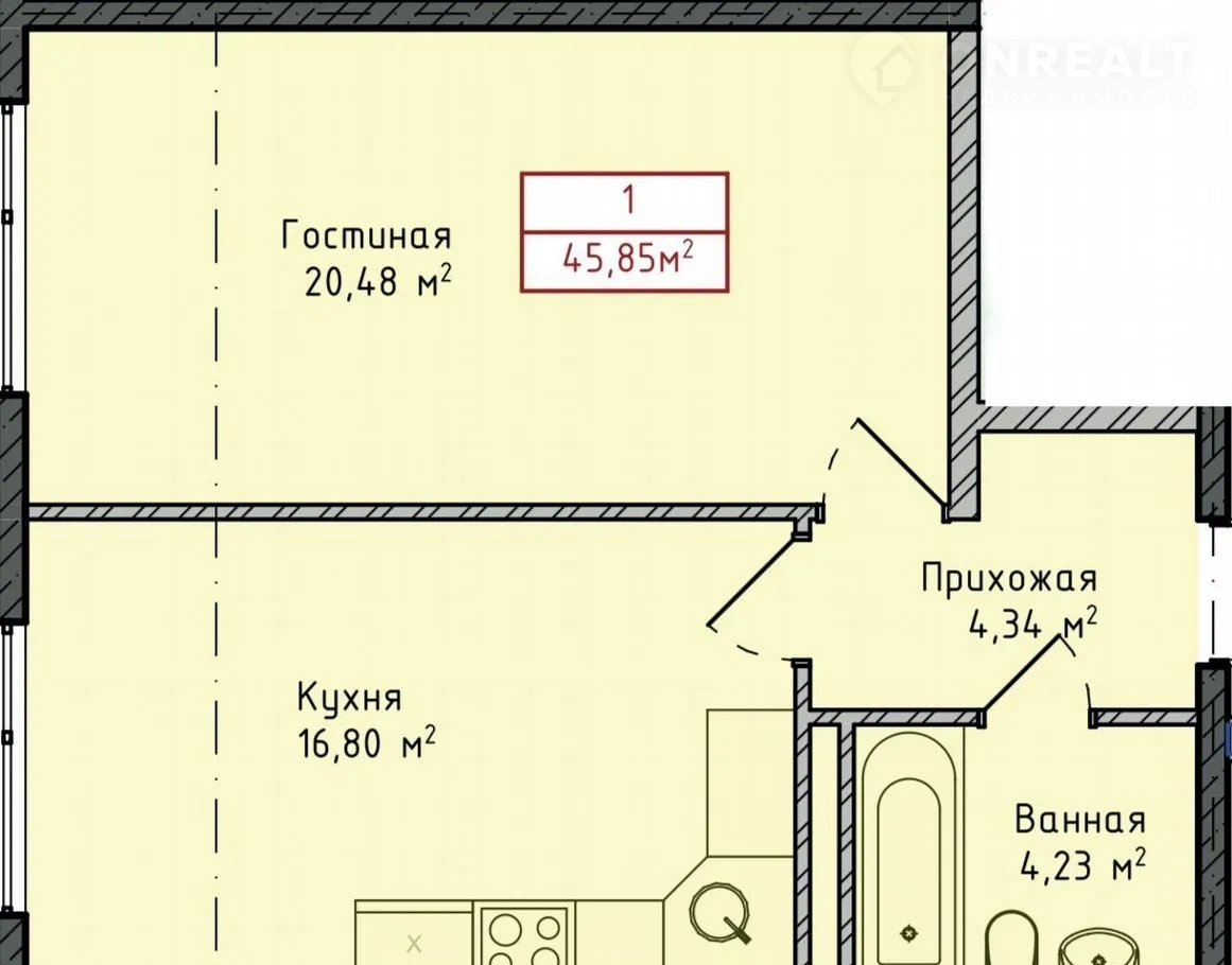 Количество комнат 1
