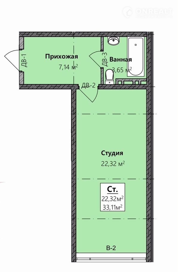 Общая площадь 33.1 м2