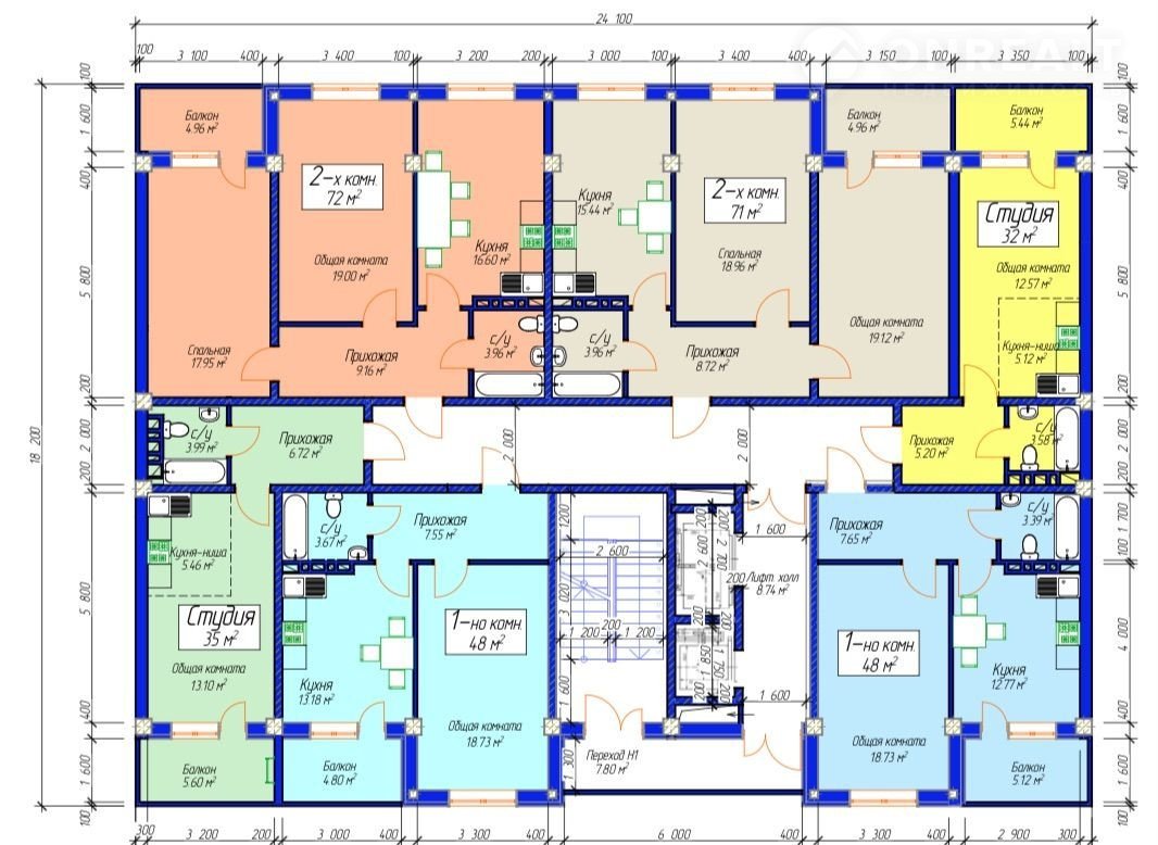 Общая площадь 48 м2