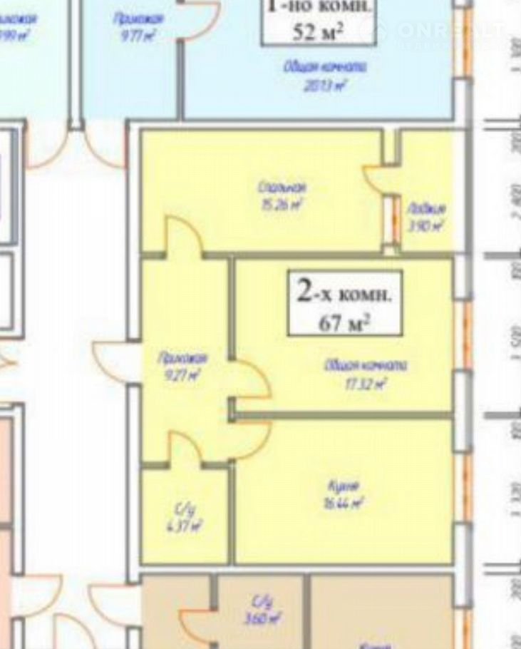 Общая площадь 67 м2