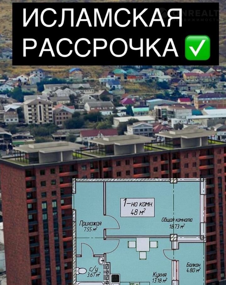 1-комнатная квартира, 48 м2, этаж 14 / 15, на продажу в Махачкале, Майская улица, 30