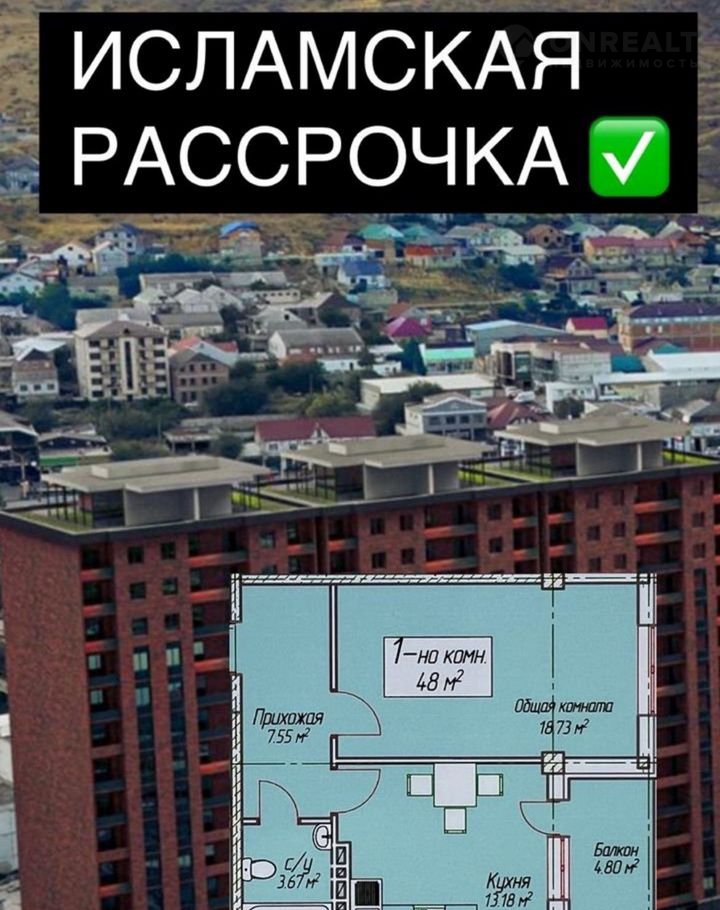 1-комнатная квартира, 48 м2, этаж 6 / 15, на продажу в Махачкале, Майская улица, 30