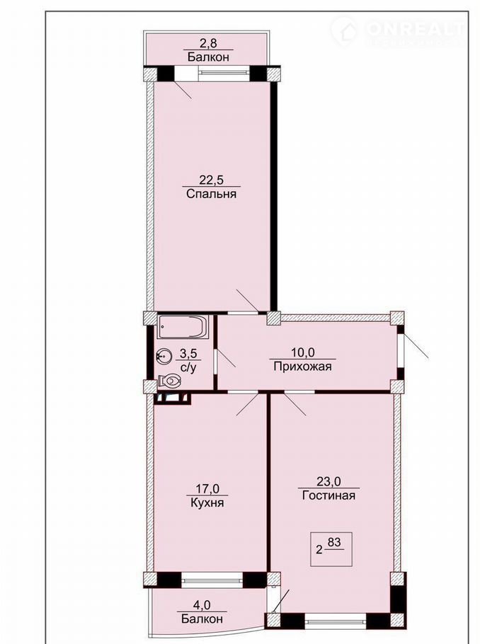 Общая площадь 83 м2