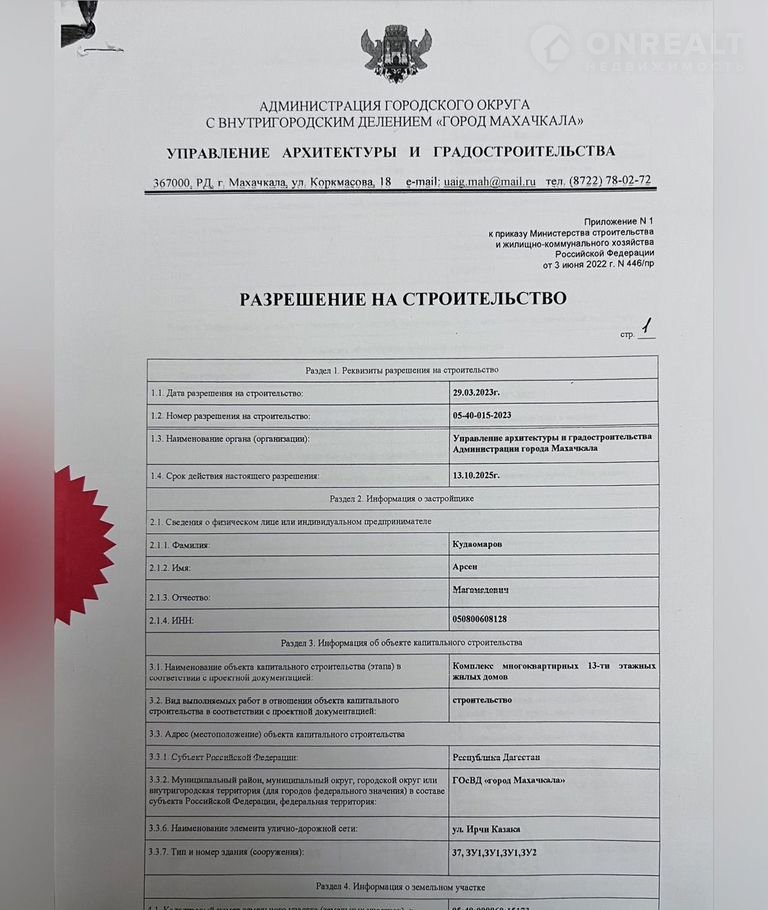 Объявление от застройщика.