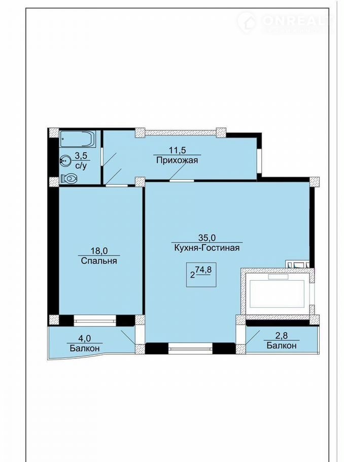 Общая площадь 74.8 м2