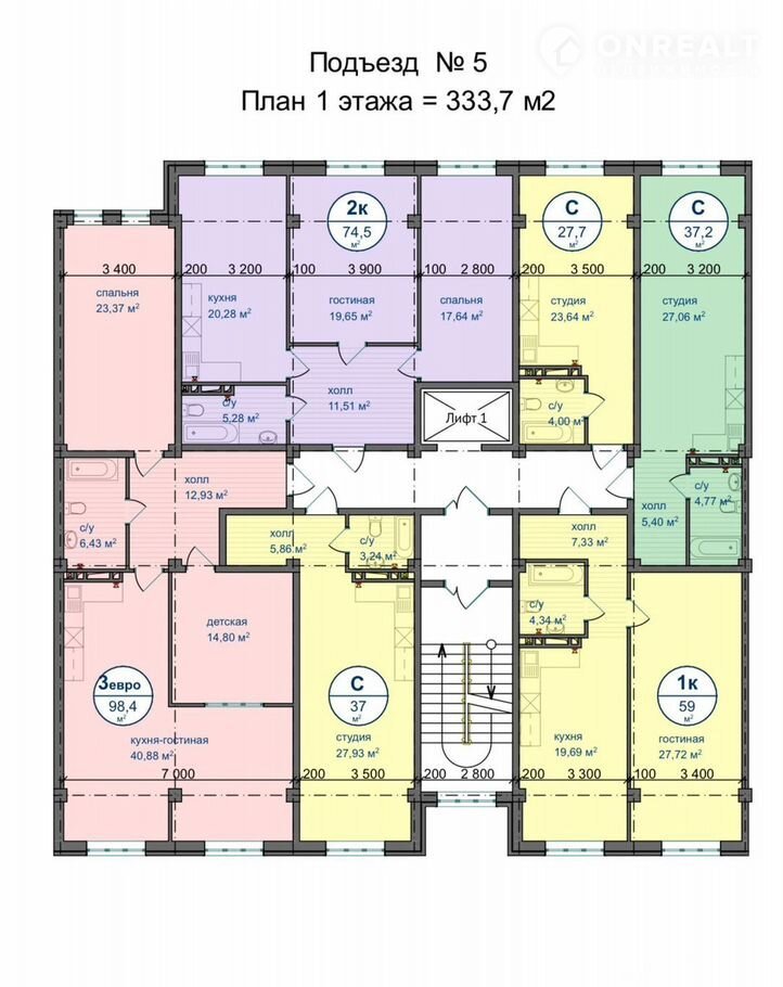 Общая площадь 27 м2