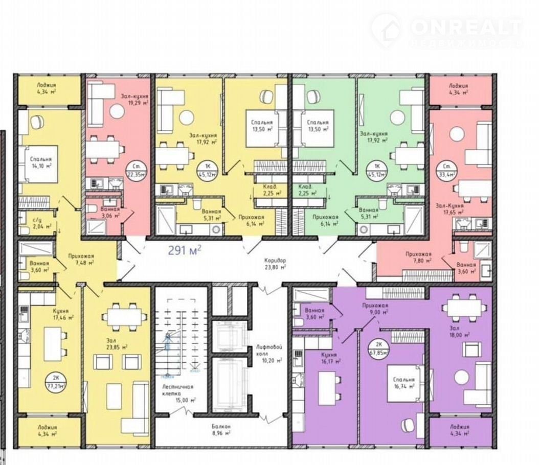 Общая площадь 77.2 м2