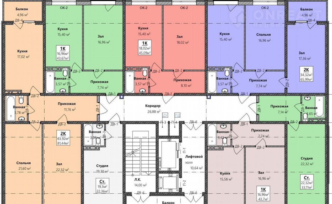 Разнообразные планировочные решения от студий до 4-комнатных квартир.