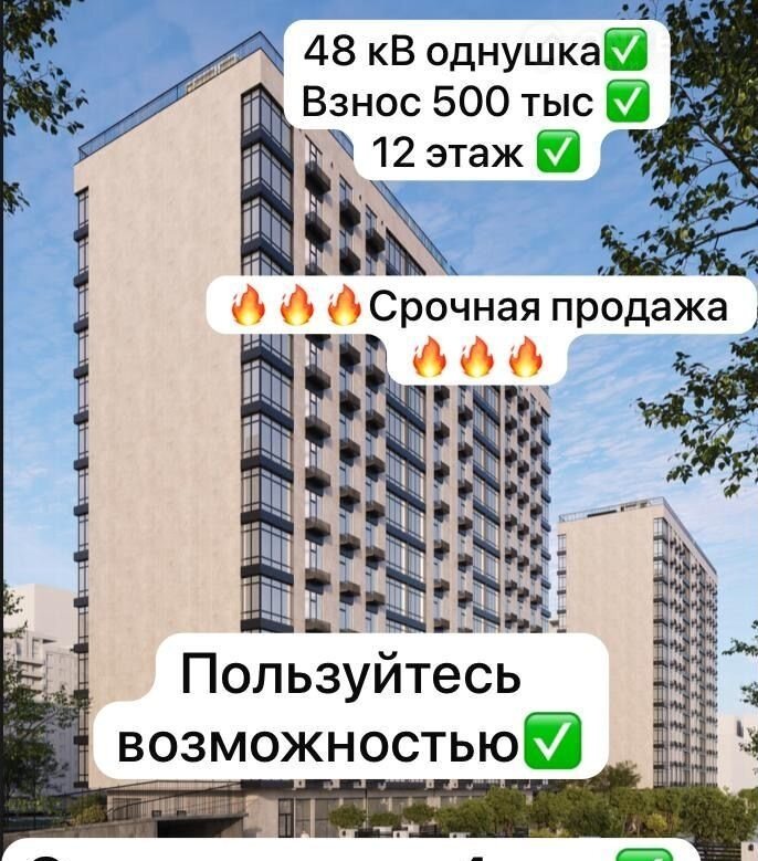 1-комнатная квартира, 48.6 м2, этаж 12 / 15, на продажу в Махачкале, улица Ирчи Казака, 101