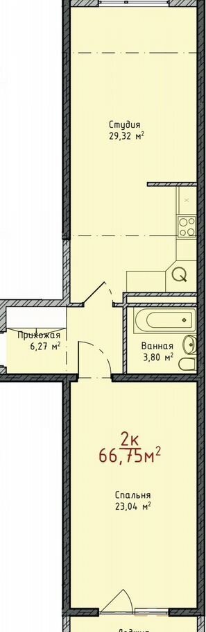 Общая площадь 66.8 м2