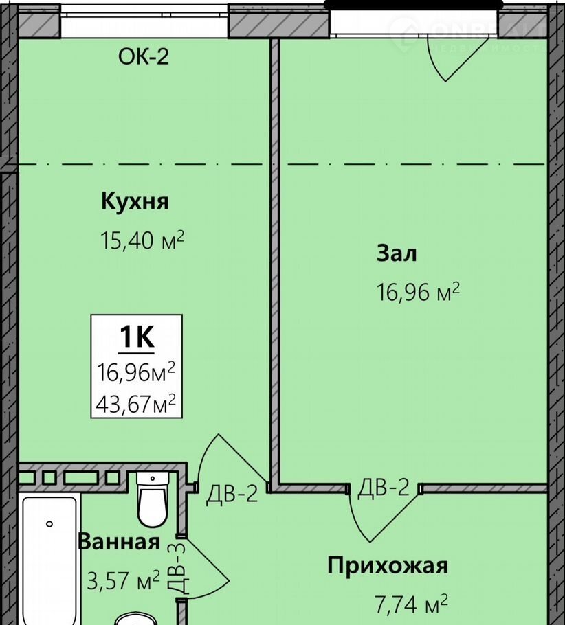 Общая площадь 43.7 м2