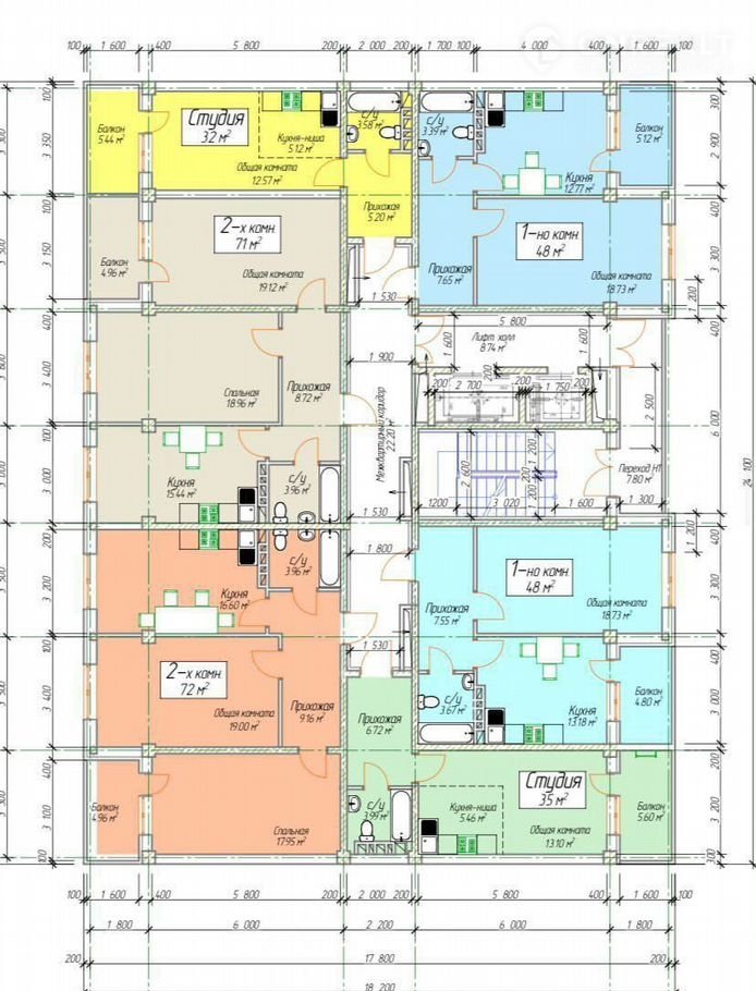 Общая площадь 48 м2
