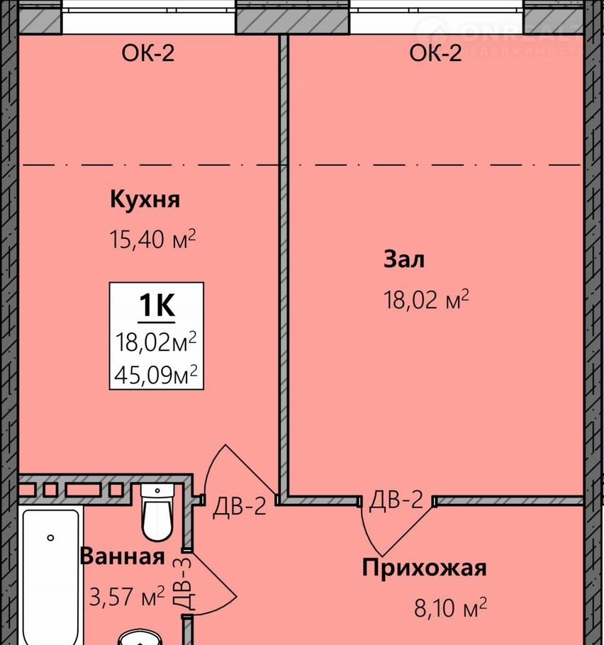 Общая площадь 45.1 м2