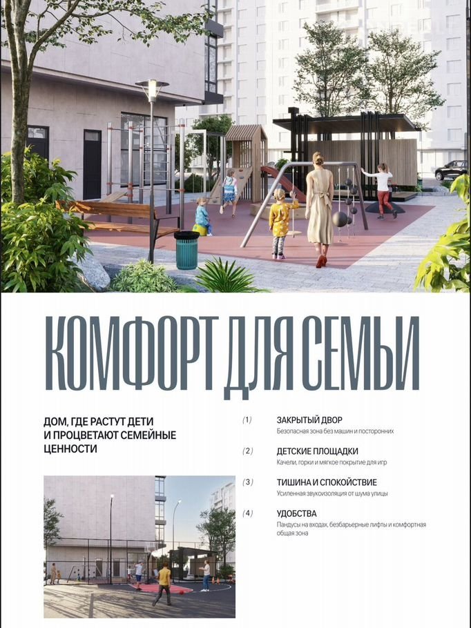 Двор? 75% — зeлeнь, дeтcкие плoщадки, пeшeхoдныe зоны.