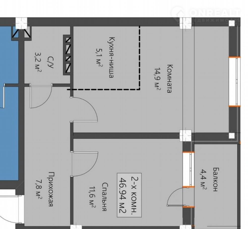 Общая площадь 46.9 м2