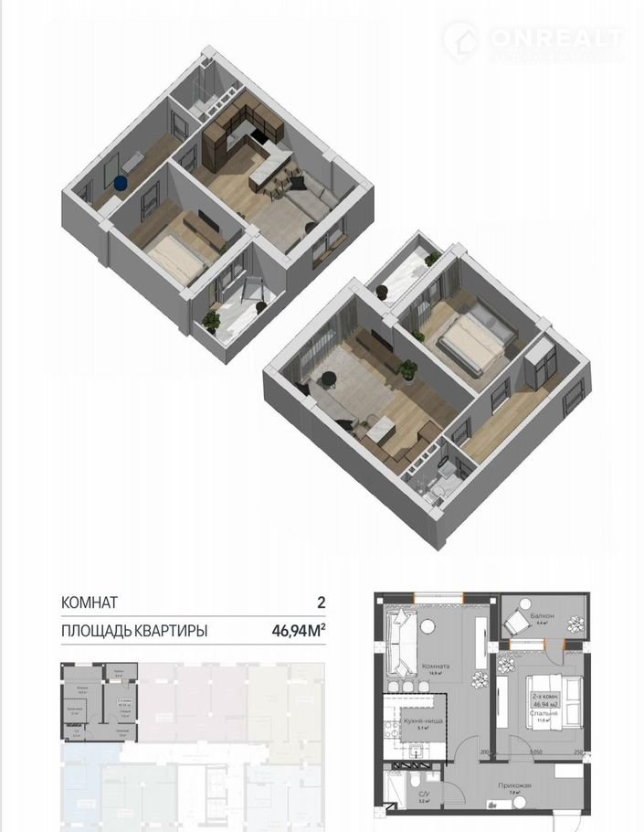 Общая площадь 46.9 м2
