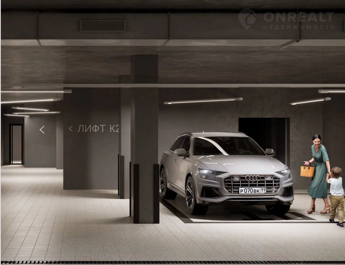 Паркинг размещен под зданием, связан с жилыми этажами лифтовыми шахтами и скрыт от дворовой жизни