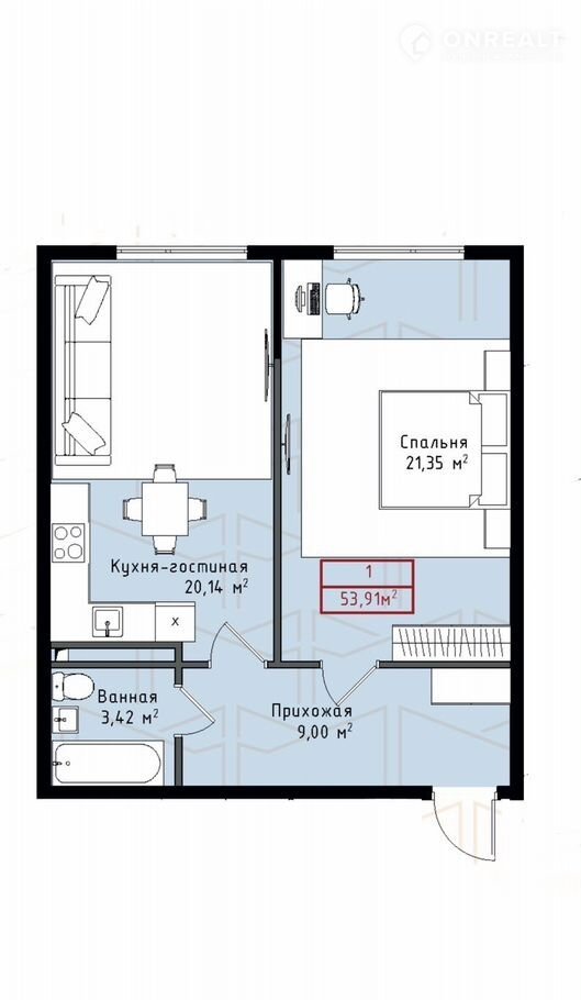 Общая площадь 53.9 м2