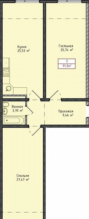 Общая площадь 91.9 м2