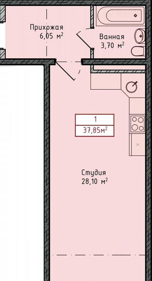 Общая площадь 37.9 м2
