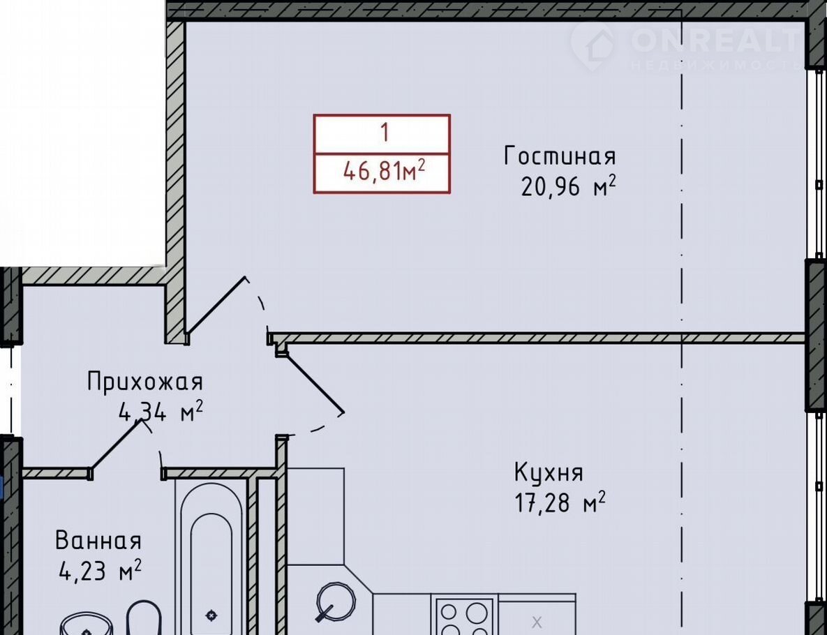 Общая площадь 46.8 м2