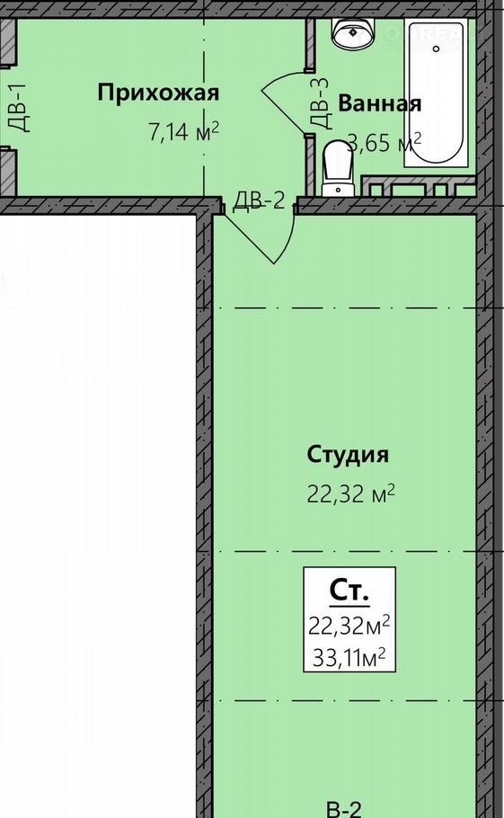 Общая площадь 33.1 м2