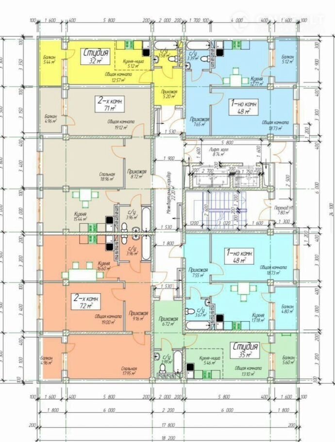 Общая площадь 48 м2