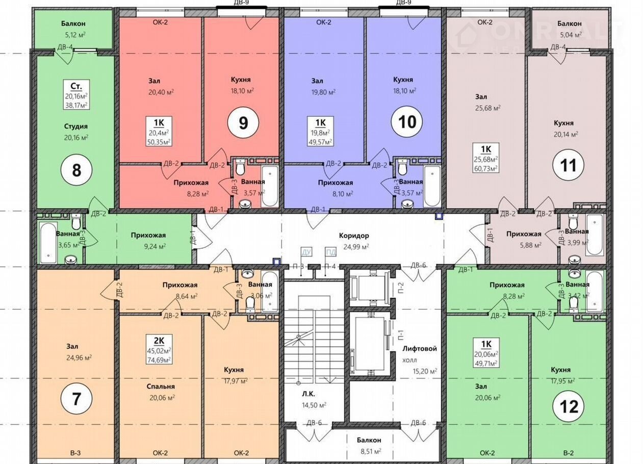 Общая площадь 60.7 м2