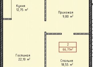 Продажа двухкомнатной квартиры, 66.7 м2, улица Даганова, 139
