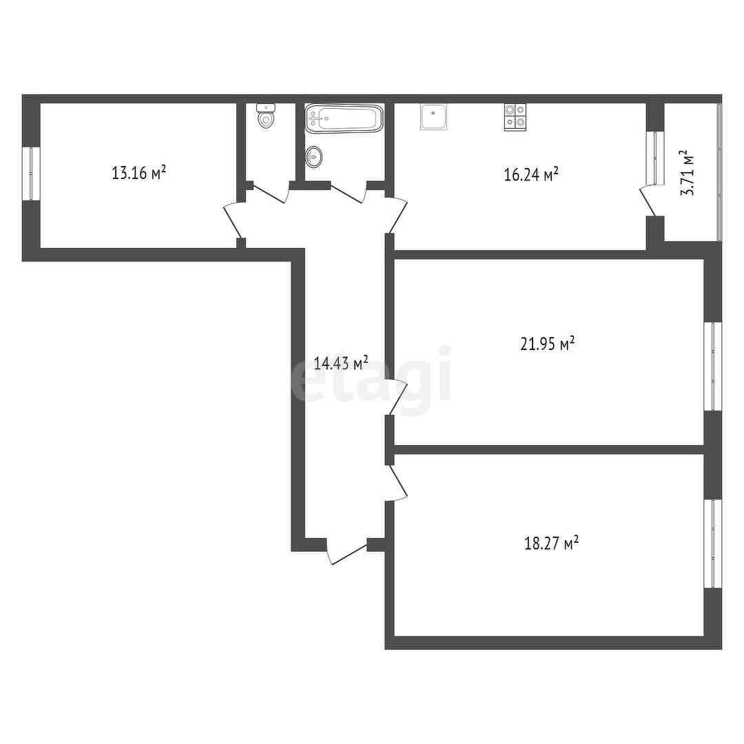 3-комнатная квартира, 92.95 м2, этаж 12 / 17, на продажу в Махачкале, улица Времена Года, 7Б