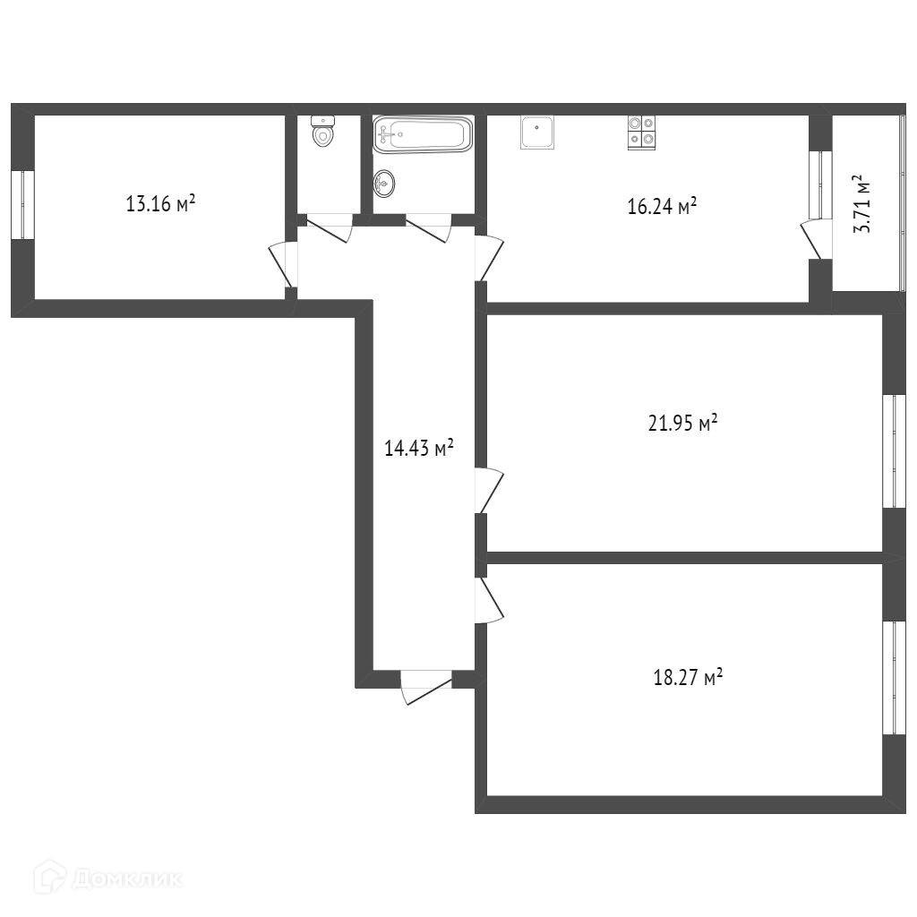 Площадь кухни 16.24 м2
