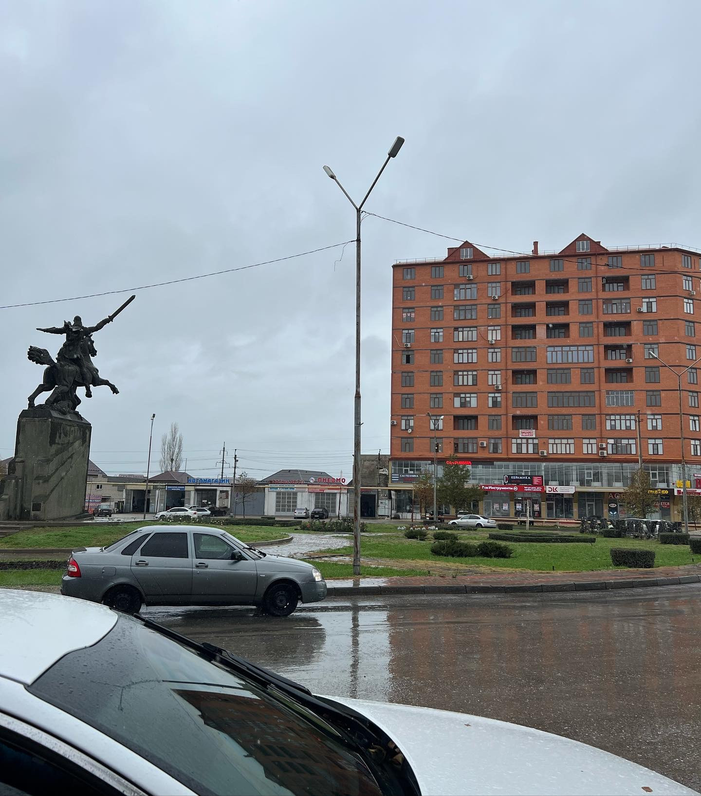 Каркас на кольце где памятник Всадник