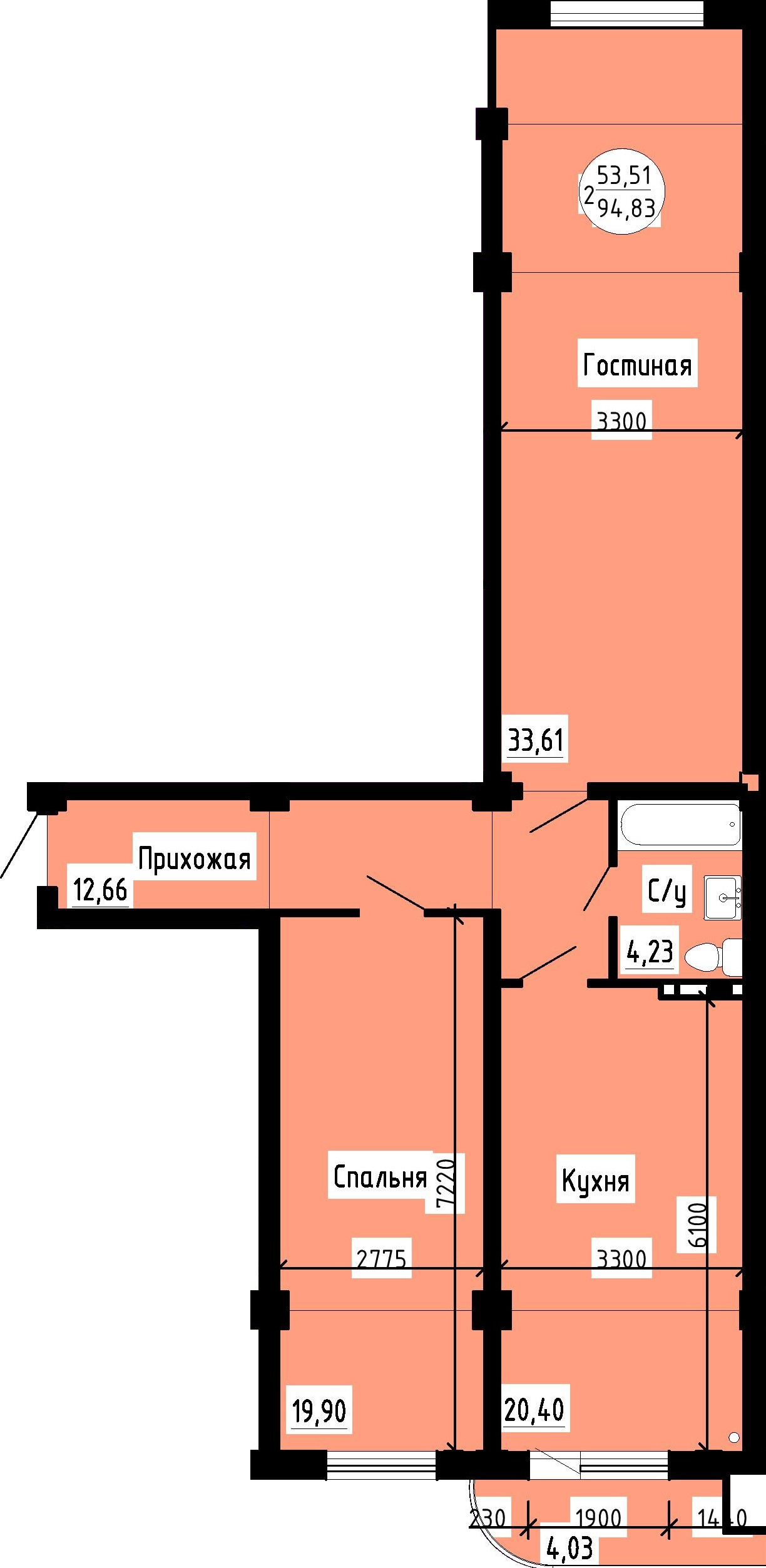 Общая площадь 96.5 м2