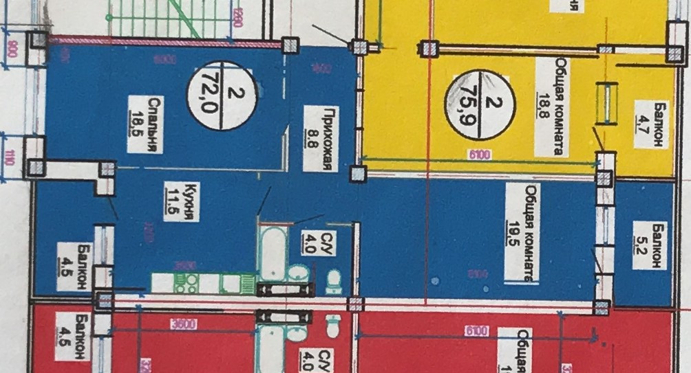 Общая площадь 72 м2