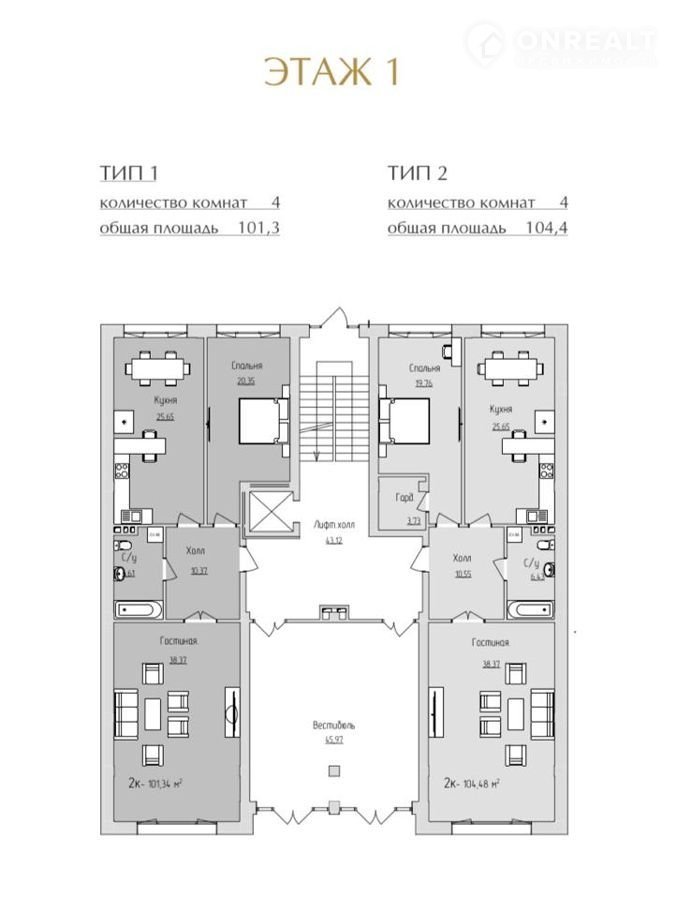 Общая площадь 104.4 м2