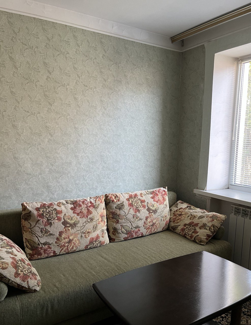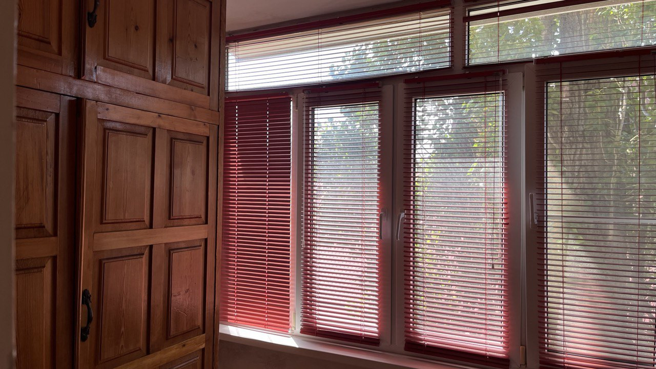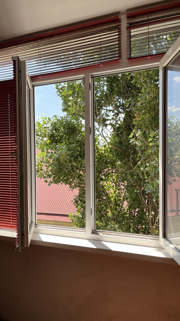 В квартире пластиковые окна, на окнах жалюзи.