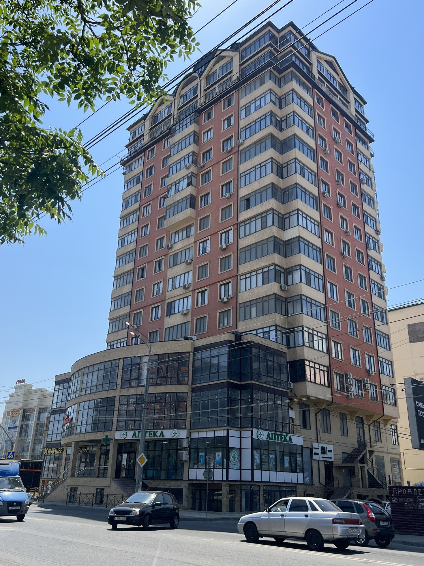 Под домом находится фаршер, аптека, стоматология и т. д. Рядом озеро "Ак-гëль", море, ТЦ " Гранд", Аллея медиков и многое