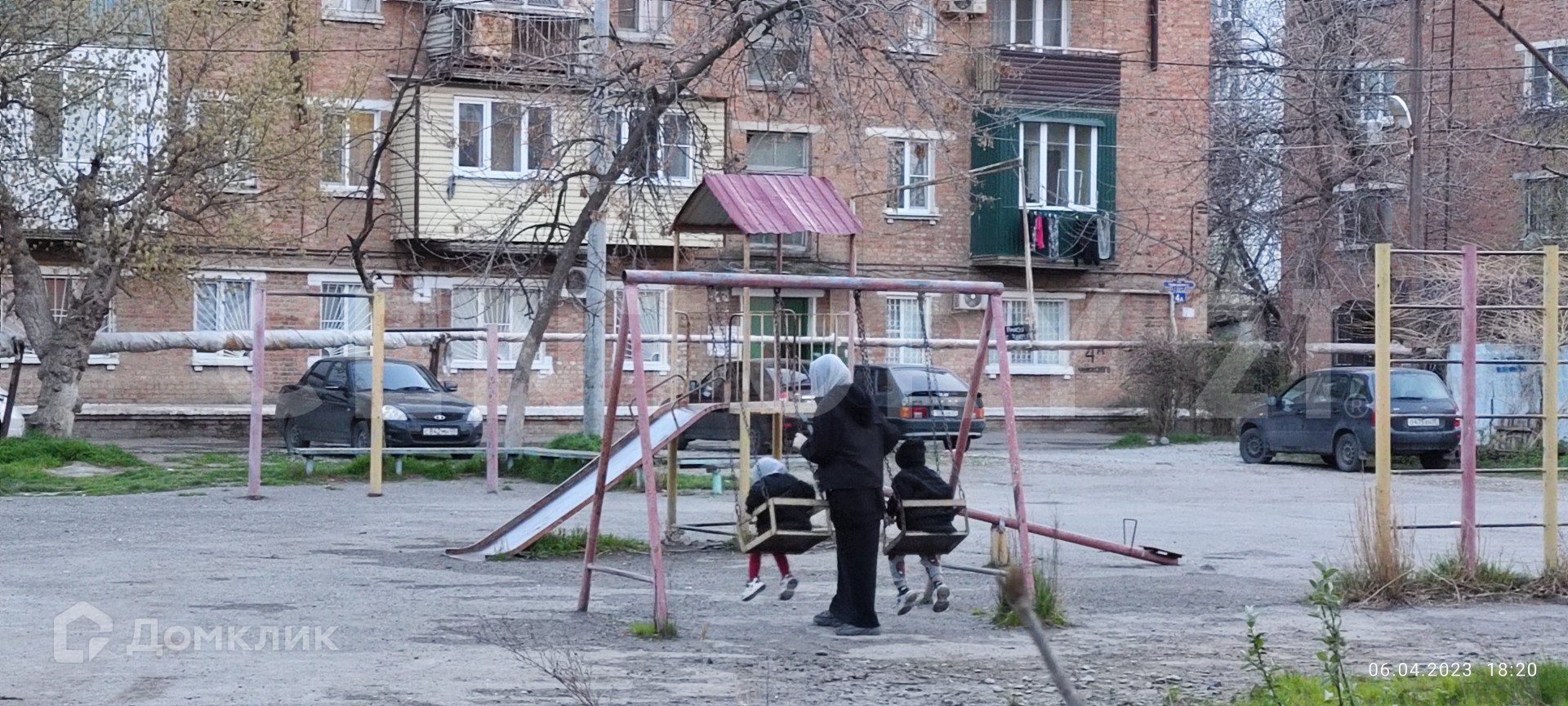 тихий благоустроенный двор, в котором есть детская площадка и просторная парковка;