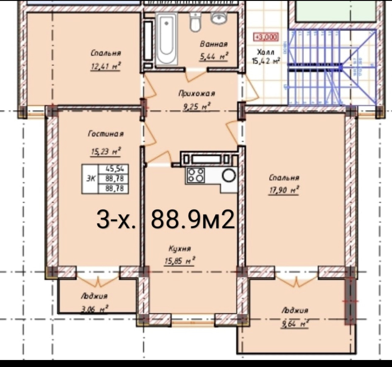 3-88,8м2