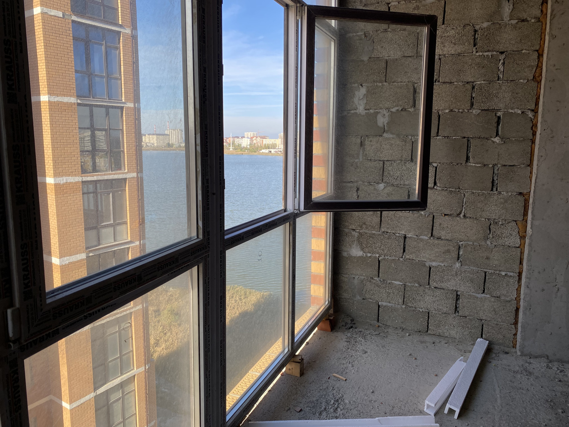 Квартира просторная, комнаты квадратные. С торца прямой вид на озеро.