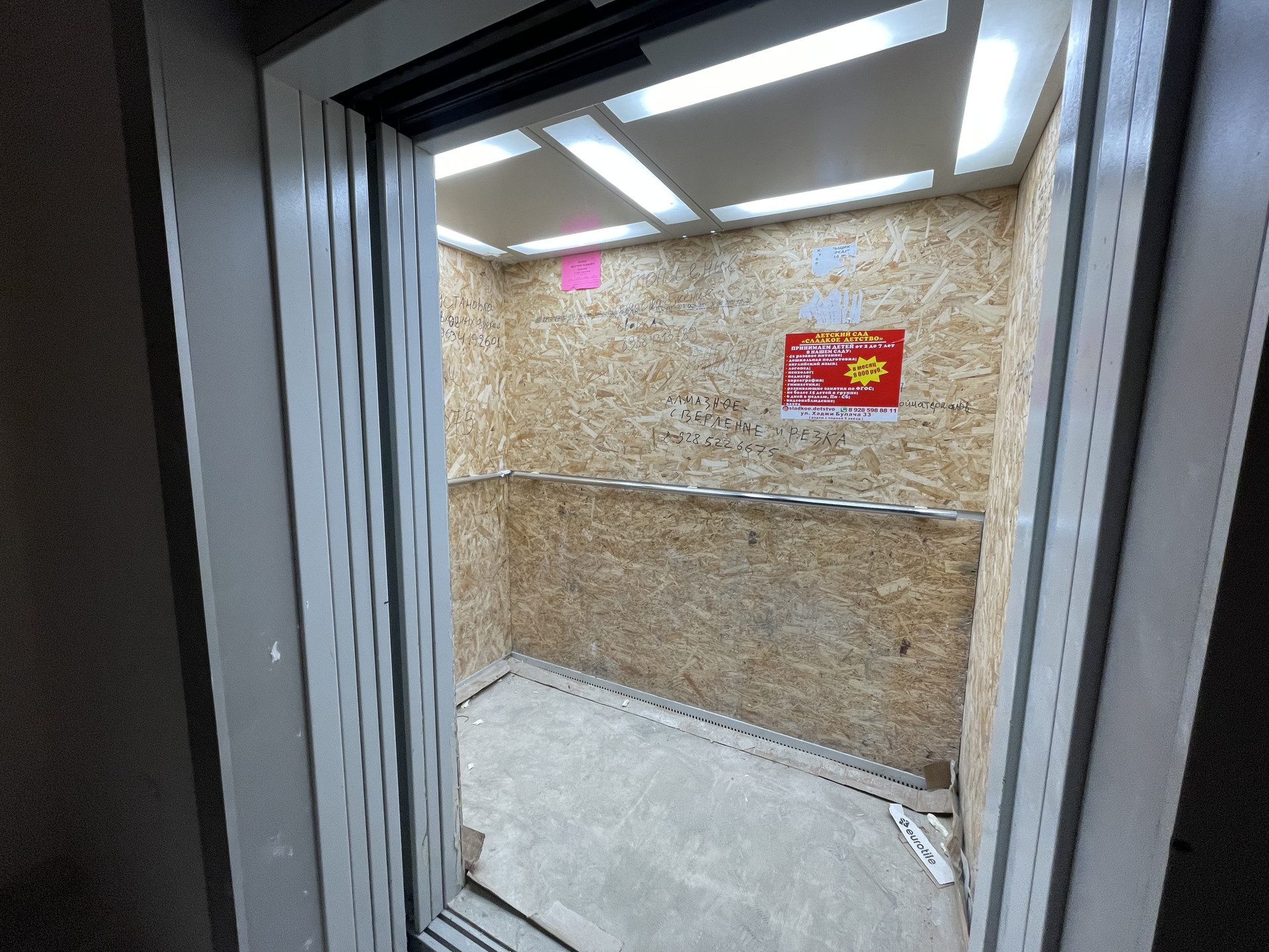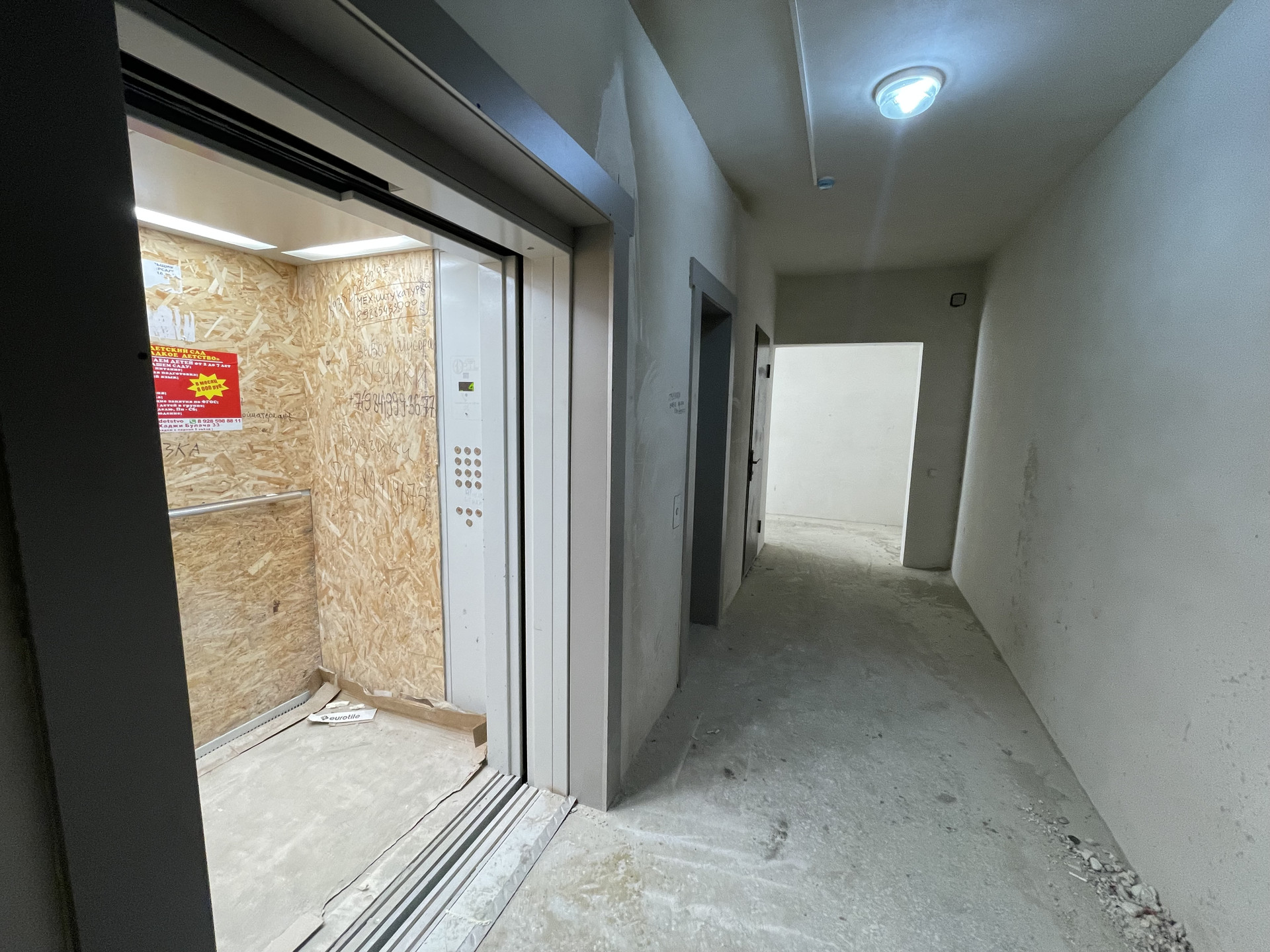 ✅ Дом полностью завершенный, люди живут. В доме функционирует 2 лифта, грузовой и пассажирский. Лестничная площадка отделена от лифтовой зоны и лестницы.
