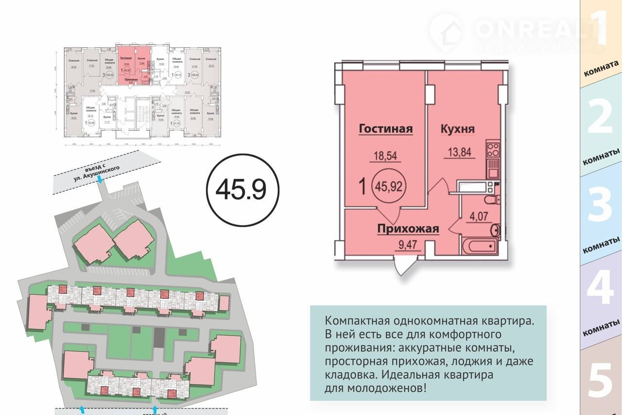 Общая площадь 45.9 м2