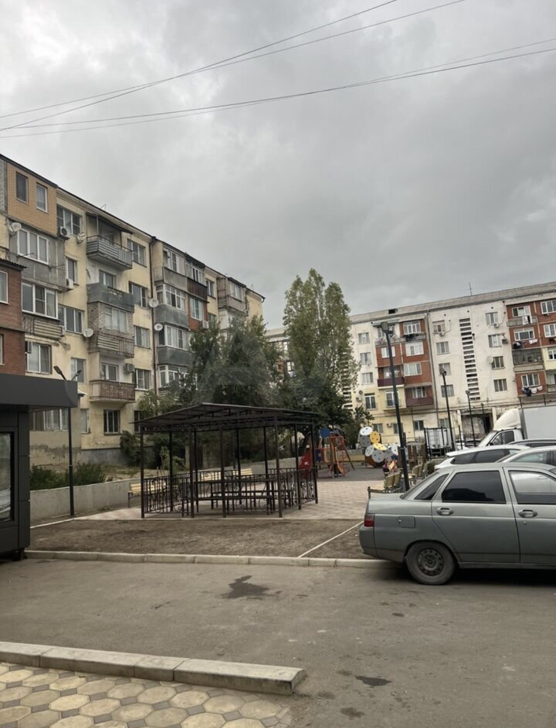 Есть площадка для парковки детская игровая площадка.