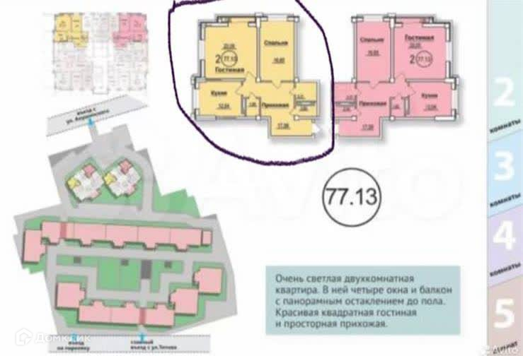 Продается 2-х комнатная квартира с площадью 77,13 м2 в каркасном виде .